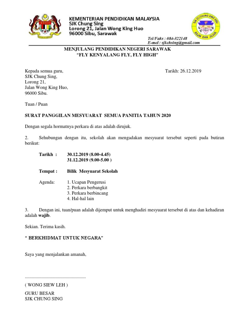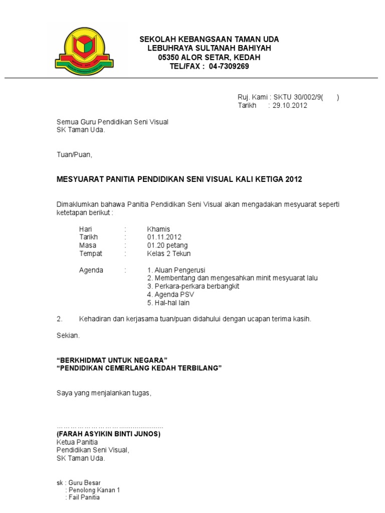 Surat Panggilan Mesyuarat Panitia Bahasa Inggeris Kali Ke 3 Pdf